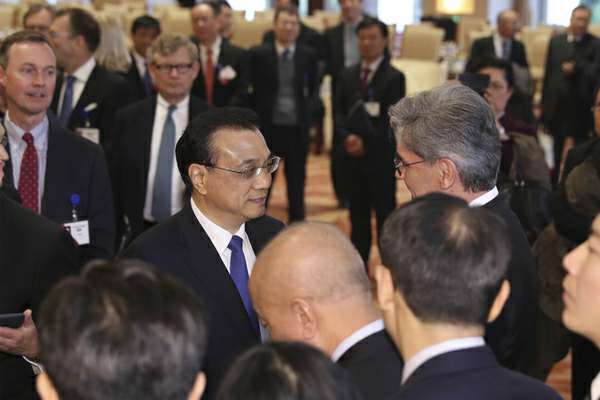 当天上午,李克强在钓鱼台国宾馆会见来华出席中国发展高层论坛 2017 年年会的境外代表。来自世界 500 强企业的负责人、国际知名学术和研究机构的专家学者、主要国际组织和媒体代表等百余人参加了座谈交流。
